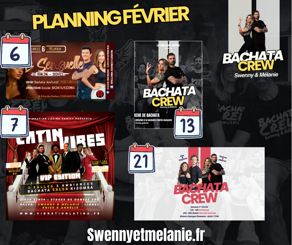 En plus des cours, Swenny et Mélanie organisent des soirées et événements où vous pourrez pratiquer, vous amuser et continuer à progresser dans la danse.